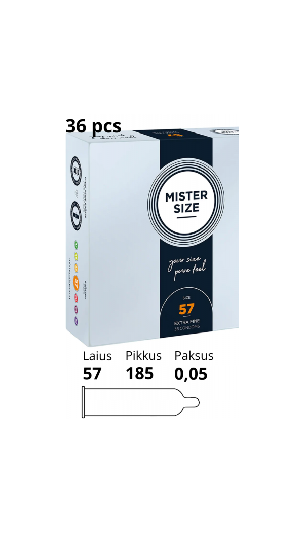MISTER SIZE 57MM kondoomid pakuvad täiuslikku sobivust, maksimaalset tundlikkust ja täielikku ohutust. Dermatoloogiliselt testitud ja kõrgelt hinnatud kvaliteet tagavad, et saad nautida iga hetke täieliku kindlustundega. 36 tükki pakis – ideaalne valik neile, kes hindavad kvaliteeti ja funktsionaalsust!