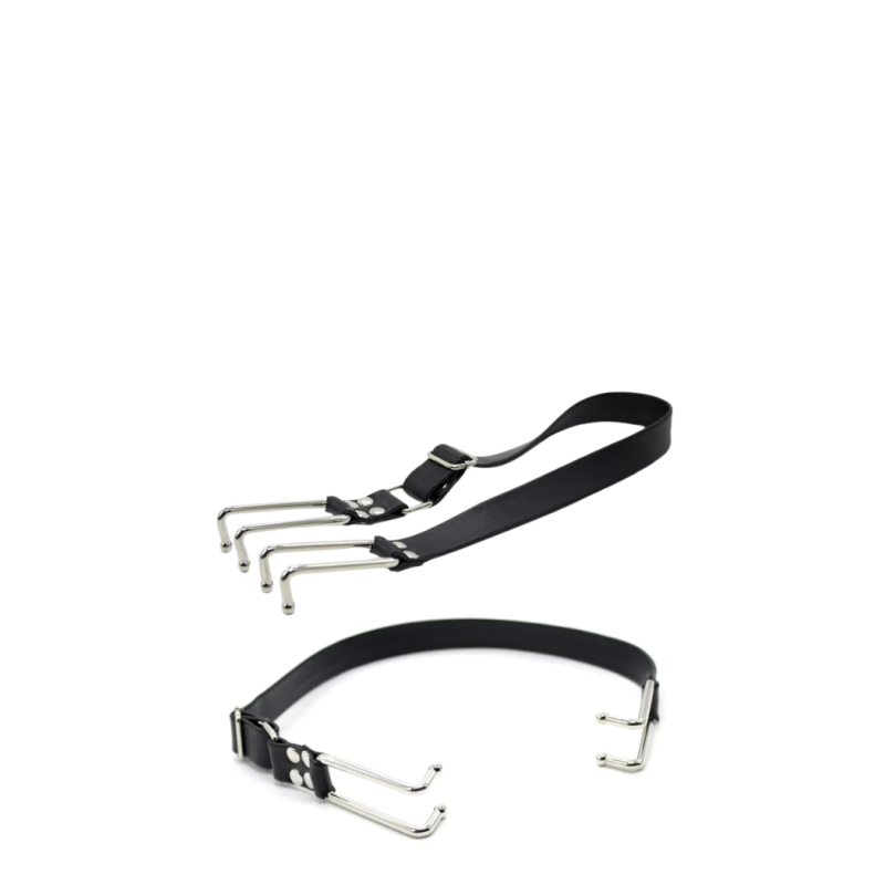 Hook Mouth Spreader on ekstreemne suutapp, mis avab partneri suu laialt, pakkudes uusi võimalusi domineerimis- ja alistumismängudes. Terashargid hoiavad suu avatud, samas kui reguleeritav vegan-nahast rihm tagab mugava ja kindla sobivuse.