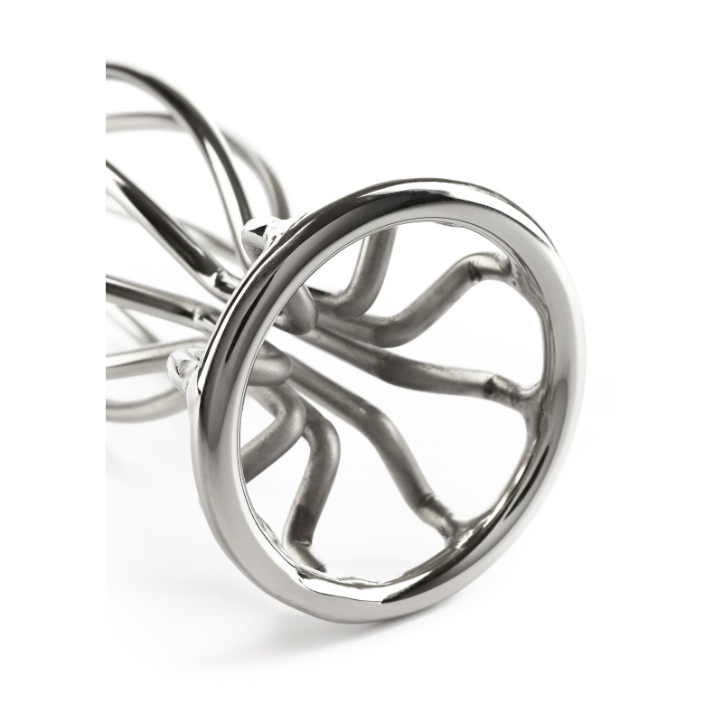 Mr. Steel Round Wire Plug Large on mõeldud neile, kes hindavad eripäraseid aistinguid ja metalllelude visuaalset esteetikat. Selle avatud traadist disain ühendab kerguse ja tugevuse, tagades mugava, kuid kindla sobivuse. Tänu roostevaba terase suurepärasele soojusjuhtivusele sobib tapp hästi temperatuurimängudeks ning avatud kuju muudab puhastamise lihtsaks ja pakub unikaalseid taktiilseid elamusi.