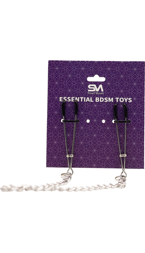 Smart Moves Nipple Clamps Silver/Black ühendavad elegantsi, kontrolli ja sensuaalsuse. Kaks pintsetttüüpi klambrit on ühendatud tugeva metallist ketiga, mis lisab igale liigutusele kaalu ja intensiivsust.