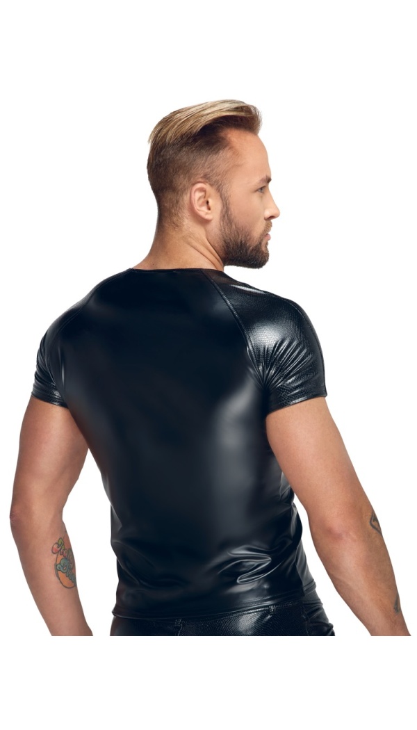 Seksikalt liibuv ja vormikat keha demonstreeriv wetlook lühikeste varrukatega särk.