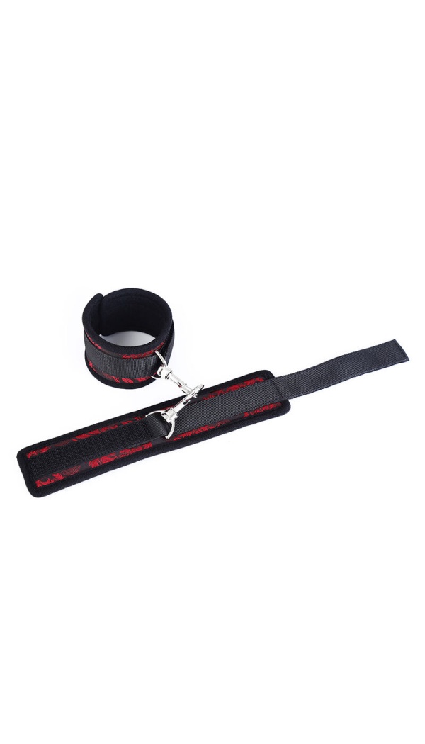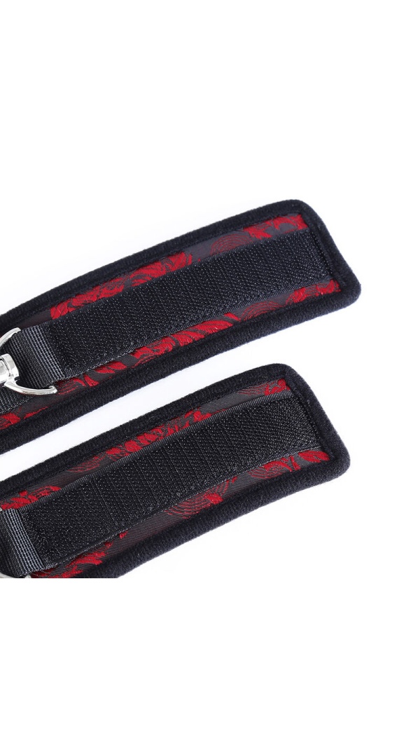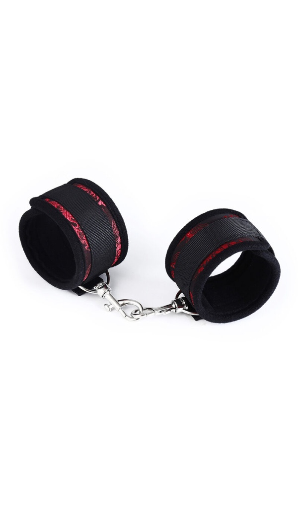 Sukelduge rafineeritud kire maailma nende suurepäraselt elegantsete punaste käeraudadega fetišimängudeks. Need käerauad, mis on kaunistatud ainulaadse sillerdava mustriga, loovad kordumatu meeleolu, lisades teie mängudesse sensuaalsust ja rafineeritust. Igal käeraudal on D-kujuline aasa karabiini või köie kinnitamiseks, muutes need ideaalseteks erinevateks stsenaariumideks. Komplekt sisaldab eemaldatavat metallist ketti, mis lisab täiendavat kontrollielementi. Pehmed ja mugavad käerauad on tänu takjakinnitusele reguleeritava suurusega, tagades ideaalse istuvuse ja maksimaalse mugavuse.