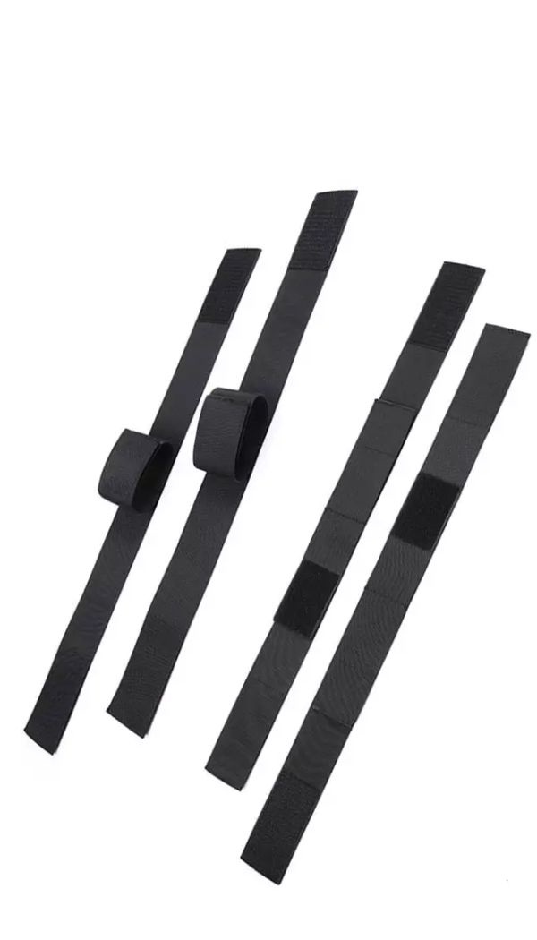 Materjal on nagu auto turvavööd, kuid tundub naha vastas mõnusalt. Takjapaela kinnitusega. Komplektis on köidikud nii kätele kui ka reitele.