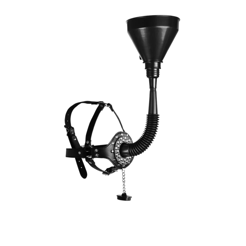 PU-nahast pea rakmed lehtriga, mis viivad BDSM-mängud täiesti uuele tasemele. Reguleeritav suurus ja eemaldatav toru annavad võimaluse kasutada toodet erinevates stsenaariumides.