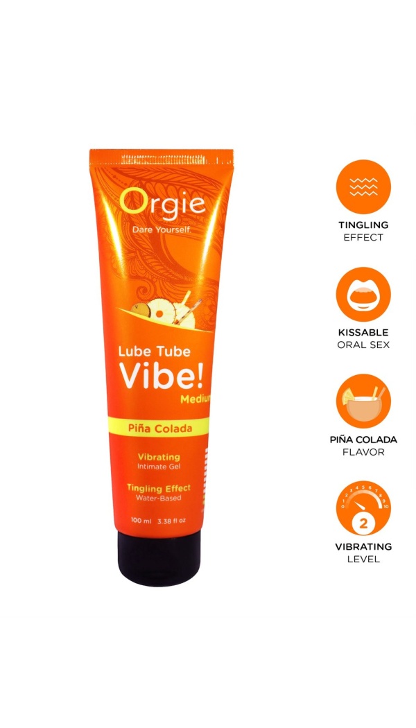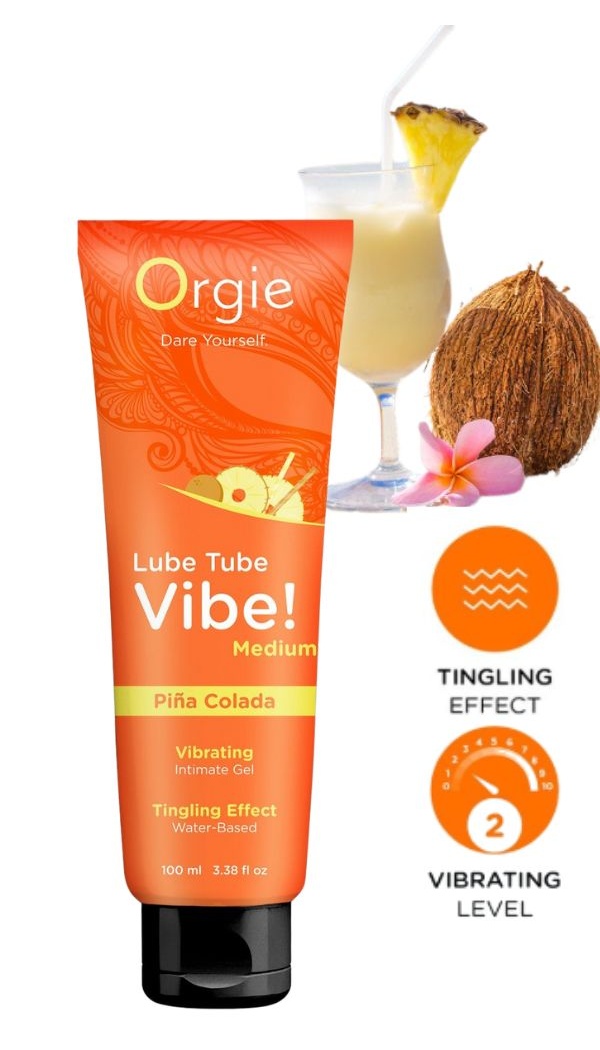 Orgie Lube Tube Vibe! Medium – Piña Colada on veepõhine intiimne geel‑libesti, millel on troopilise Piña Colada kokteili maitse ja kerge vibreeriv efekt (2/10). See ühendab õrna kiheleva tunde ja siidise, pikaajalise libeduse, muutes hetked intiimsemaks ja mängulisemaks. Sobib nii libestina kui ka suuseksiks.