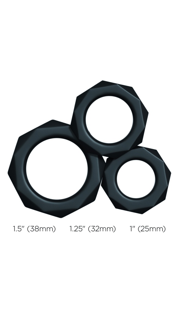 3 peeniserõngast läbimõõduga 3,8, 3,2 ja 2,5 cm