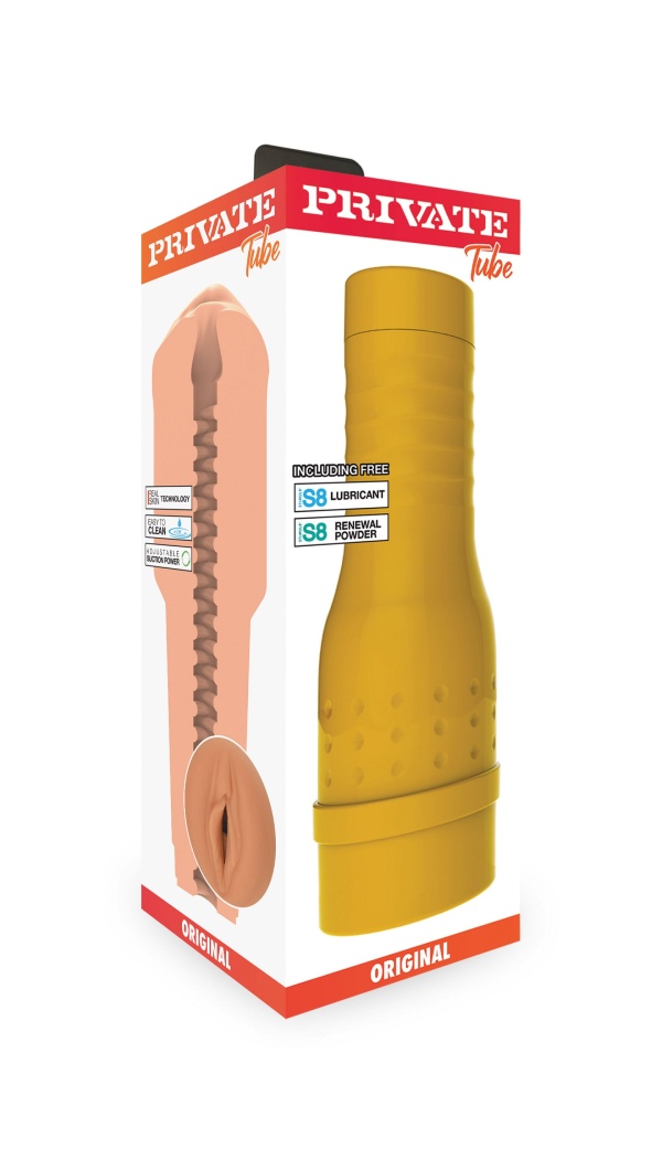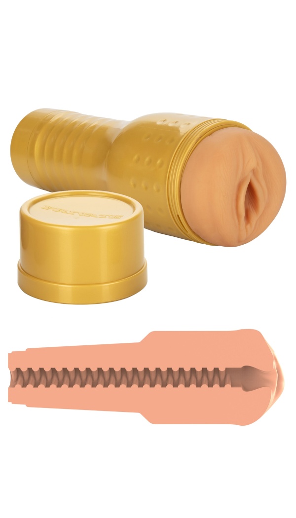 Vagiina on disainitud diskreetsesse, taskulambi kujulisse hoidikusse, mis on valmistatud kullavärvi plastikust.