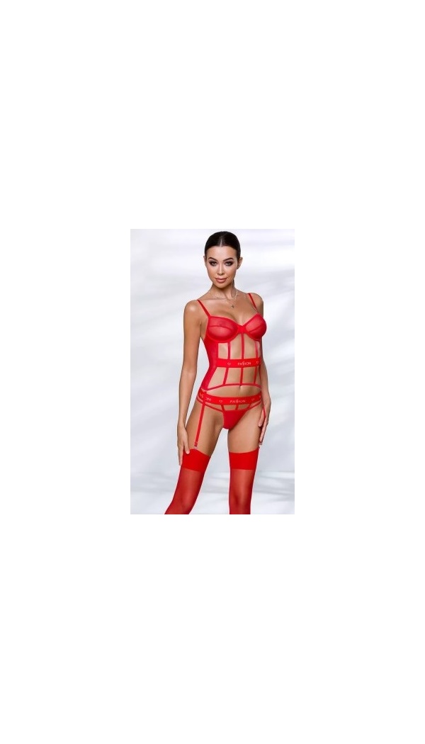 PASSION logoga punast värvi venivast tüllist põnev korsett, mille rinnahoidjal on tugikaared ja paelad on reguleeritava pikkusega. Sukatripihoidjaid saab ka eemaldada.
