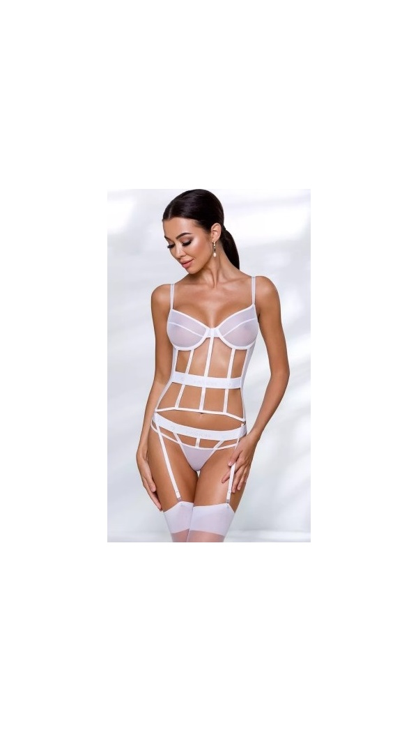 PASSION logoga valget värvi venivast tüllist põnev korsett, mille rinnahoidjal on tugikaared ja paelad on reguleeritava pikkusega. Sukatripihoidjaid saab ka eemaldada.