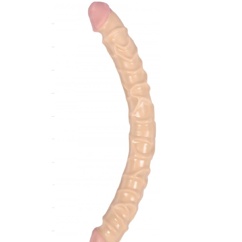 Hügieenilisest Sil-A-Gel™ materjalist, ftalaadivaba, realistliku välimusega, naturaalset tooni kahe otsaga dildo.