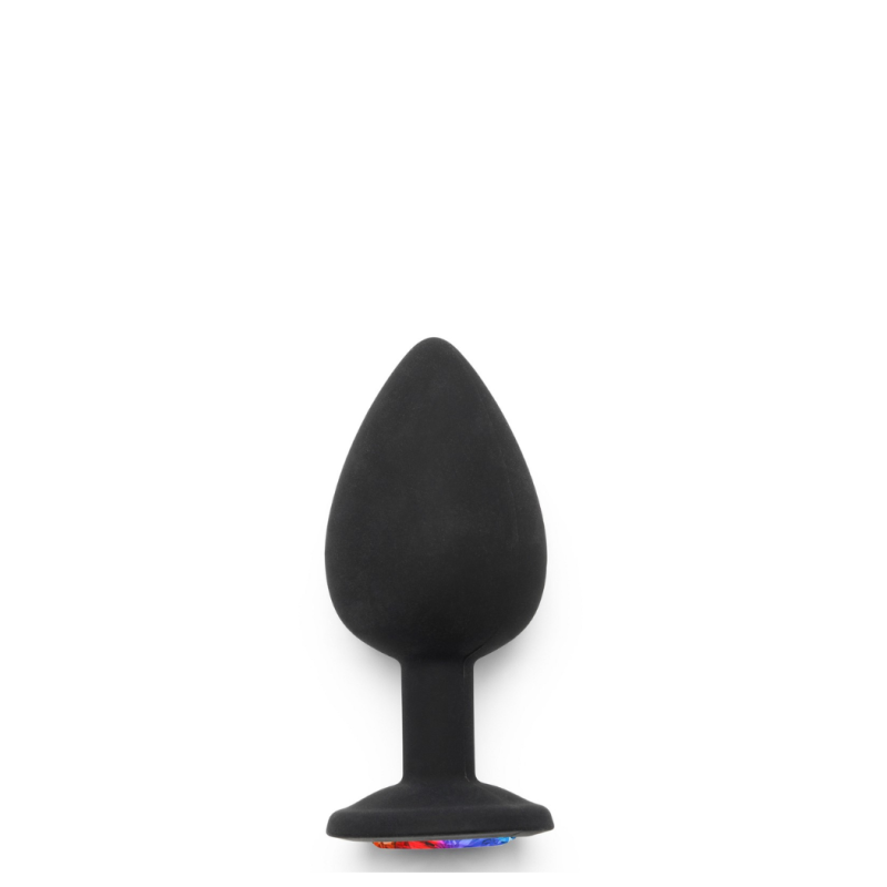 Mitmevärviliselt sätendava kivikesega siidisepinnaline silikoonist suurem anaaltapp.