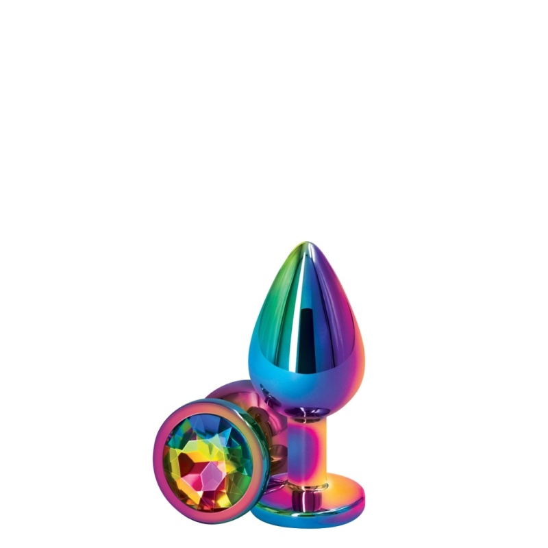 Kergest alumiiniumist ja mitmevärvilise kroomkihiga kaunistatud, suure vikerkaarevärvides sädeleva kivikesega anaaltapp.