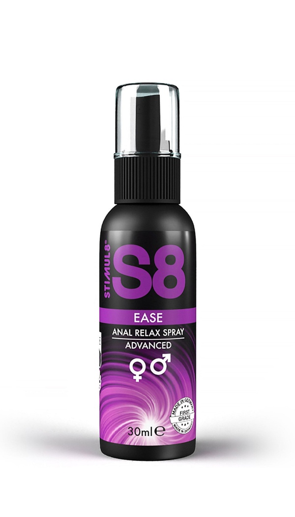 S8 Ease Anal Relax Spray on õrn lõõgastav sprei, mis on loodud pakkuma mugavust ja nauditavust anaalseksi ajal. Selle aktiivne koostisosa Laureth-9 aitab lihastel lõõgastuda ja vähendab tundlikkust, muutes sisenemise lihtsamaks ja meeldivamaks.
