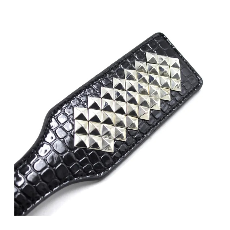 See must kvaliteetsest vegan-nahast paddle on ideaalne edasijõudnud mängijatele, kes soovivad erinevaid stimulatsioonitasemeid. Üks pool on sile, ideaalne soojenduseks ja mõõdukamaks nahaga kokkupuuteks. Teisel poolel on metallist needid, mis lisavad intensiivsema löögitunde. Alusta mängu pehmema poolega ja keera paddle ümber, kui soovid tempot tõsta ja mängu kuumemaks muuta.