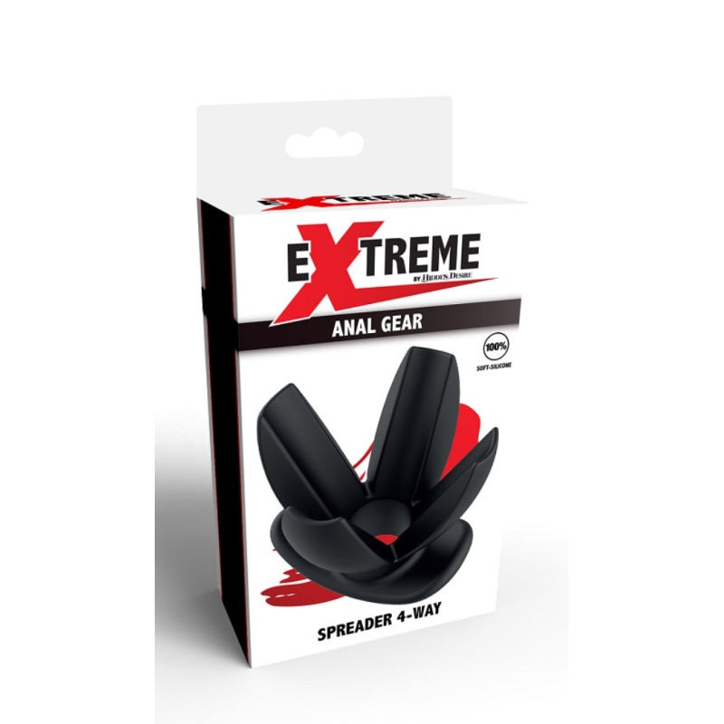 Extreme by Hidden Desire offers a unique collection of anal gear specially crafted for those who dare to push the boundaries of pleasure. The Spreader 4-Way Plug is designed to glide in as smoothly as possible. Once snug deep inside, it will open up and expand, delivering an unbeatable full sensation. With the spreader set in place, you can add extra lubricant through the hole. Made of 100% pure silicone and featuring a wide base for safety and comfort, the Spreader 4-Way Plug guarantees an exhilarating experience. Unlock your wildest fantasies with the Extreme Spreader 4-way plug.