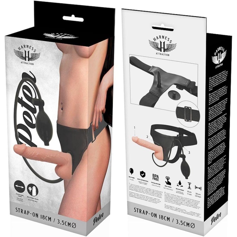 See Harness Attractioni strap-on ühendab realistliku naudingu ja praktilise disaini. Täispumbatav dildo on valmistatud pehmest, kuid vastupidavast PVC-materjalist, millel on eriti tihe ja turvaline struktuur – isegi täielikult täispumbatuna säilitab see loomuliku kuju ja tunde, mitte ei meenuta õhupalli.