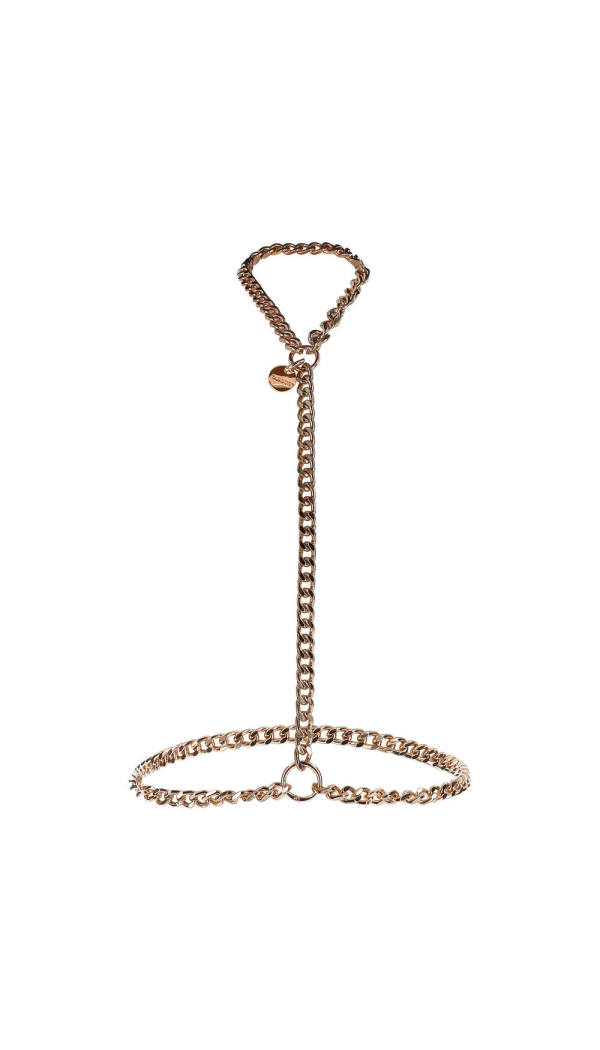 Taboom Dona Statement Harness on luksuslik roosakuldne portupee, mis lisab igale õhtukleidile või paljale nahale julget ja seksikat stiili. Ideaalne kihiti kandmiseks või sensuaalseteks seiklusteks.