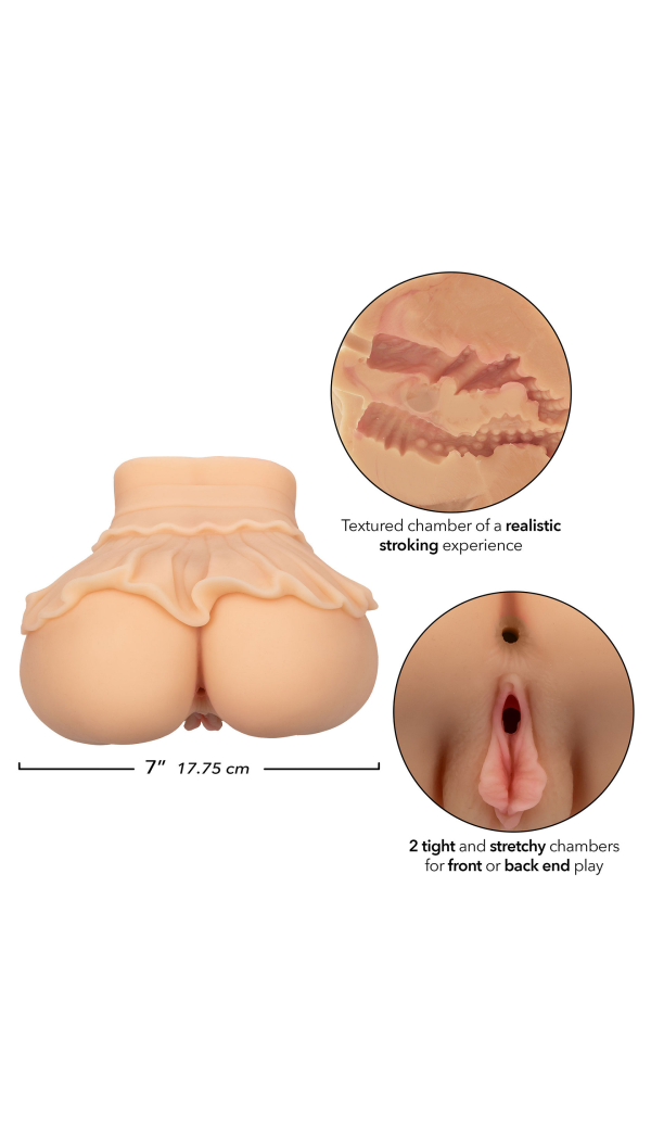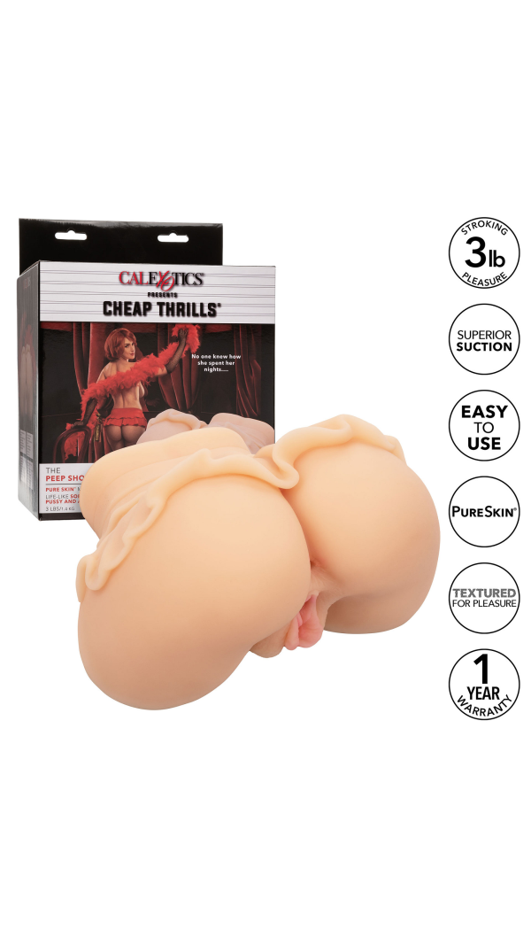 CalExotics Cheap Thrills The Peep Show Girl toob teieni autentse ja meelierutava kogemuse, mis on loodud eesmärgiga tuua rohkem intiimset rahulolu ja fantaasiarikast naudingut. Masturbator on valmistatud elutruust Pure Skin (TPE) materjalist, mis pakub pehmet, kuid samas tihedat ja venivat tunnetust. Selle mudeli raskus – tervelt 1,4 kg – tagab stabiilse ning loomutruu kasutamise, võimaldades sügavamat ja intensiivsemat stimulatsiooni.