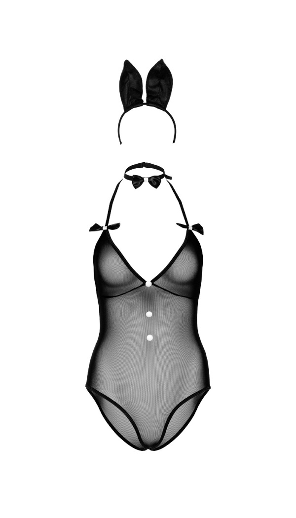 Classic Bunny Roleplay Set - rollimängu komplekt, mis sisaldab pehmet, läbipaistvat tüllist body koos kikilipsu ja smokinööpidega. Komplekti kuulub ka jänkukõrvadega peavõru.