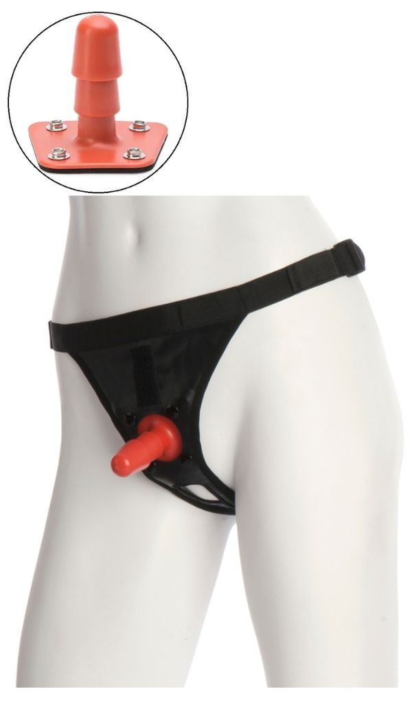 Vac-U-Lock sarja strapon´i pehmed ja mugavad püksid, mis näevad välja nagu nahk ja on koos dildo kinnitamise alusega.