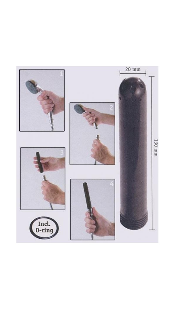 Anaalduššiotsik, mille saab hõlpsasti keerata tavalise duššivooliku külge. Mugavalt ümar augukestega otsik, mis reguleerib veesurve tugevust.