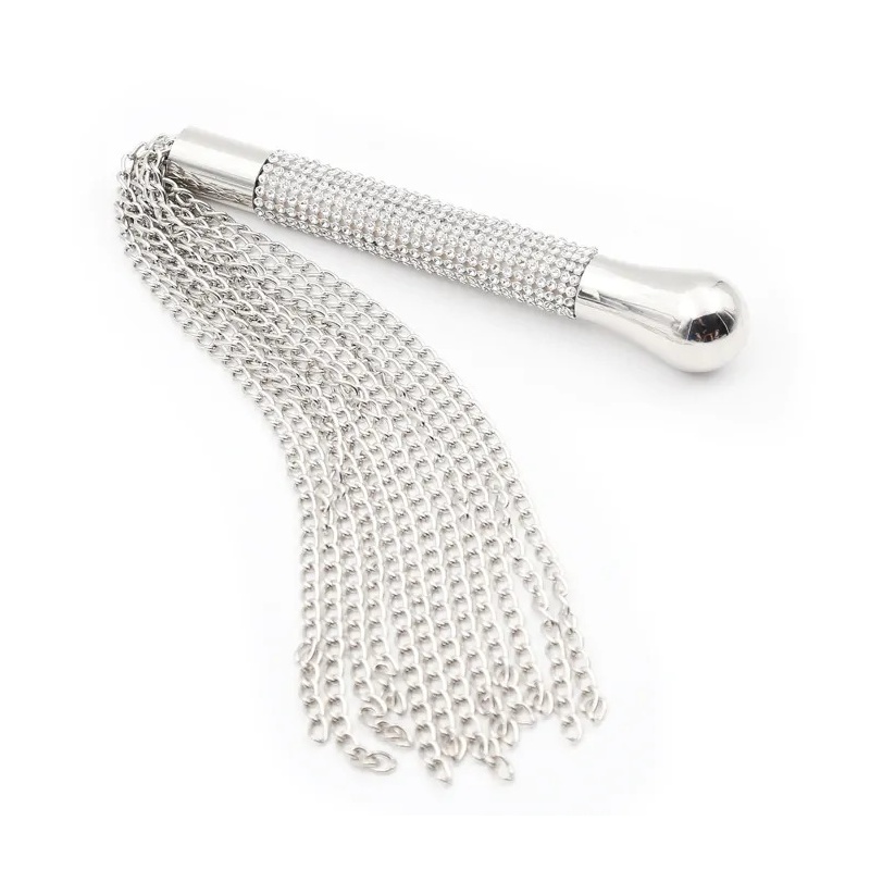 Metallist ja ketipiits, mille käepide on kaunistatud kristallidega.