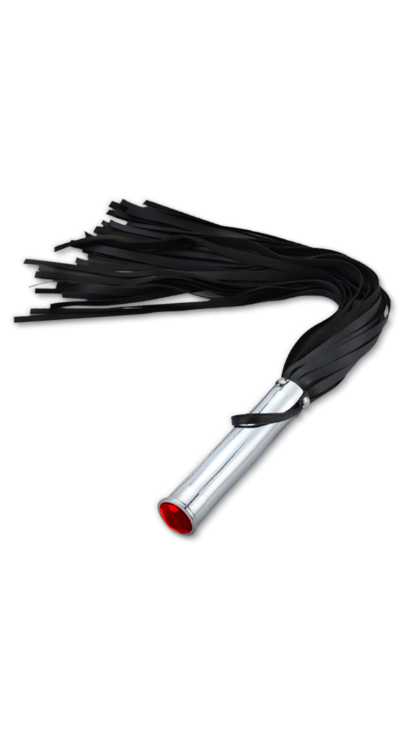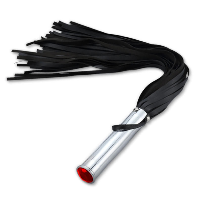 Aluminium Whip with Built-in Buttplug Black – elegantne lühike piits peidetud anaaltapiga, mille dekoratiivne detail lisab stiilsust ja funktsionaalsust BDSM-mängudele.
