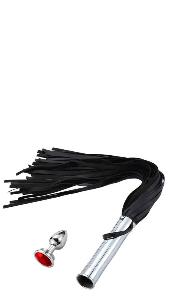 Aluminium Whip with Built-in Buttplug Black on kaks-ühes disainiga BDSM-aksessuaar, mis ühendab endas elegantse lühikese piitsa ja peidetud väikese anaaltapi. Täiuslik valik neile, kes otsivad mitmekülgset ja üllatavat kogemust.