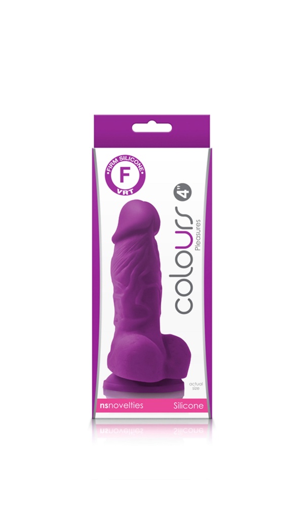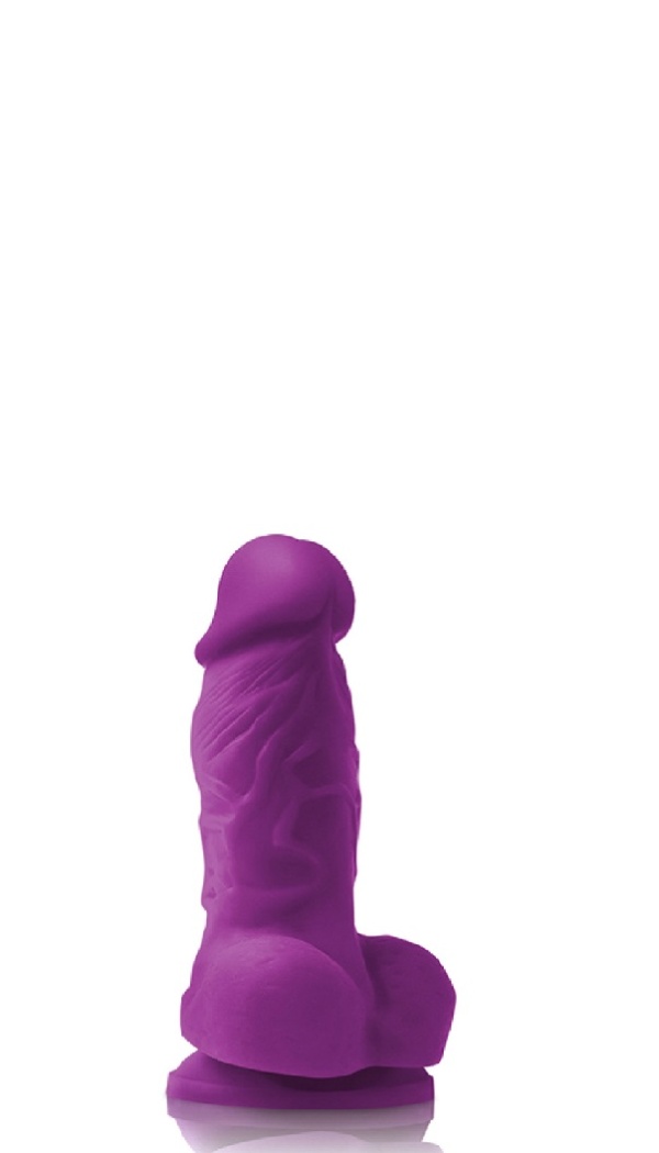 Kvaliteetsest silikoonist, hüpoallergeeniline munandite ja iminapaga lillat värvi dildo.