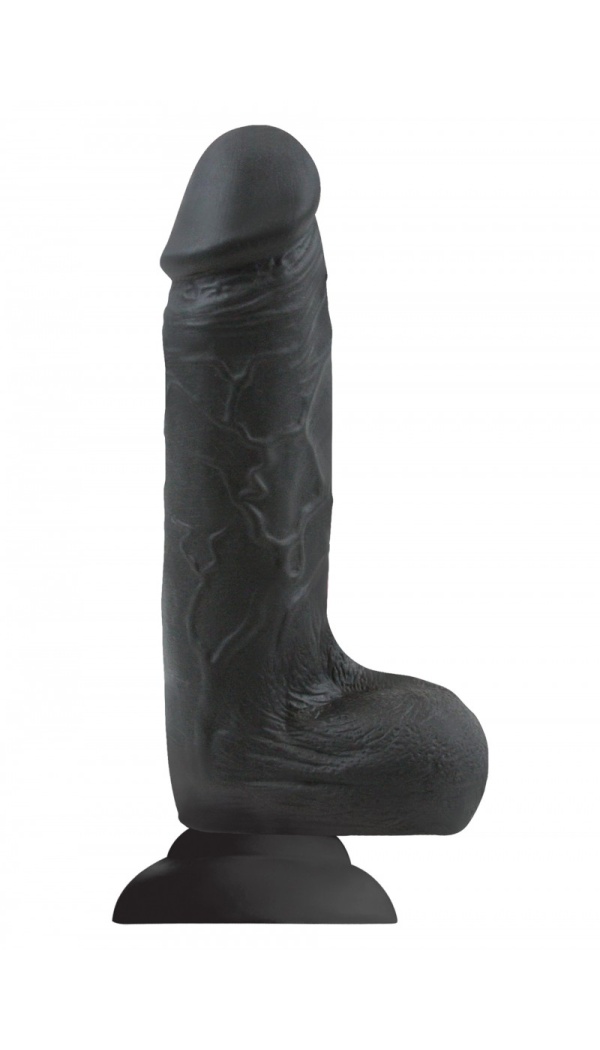 Realistliku kujuga, iminapa ja munanditega musta värvi dildo. Väga meeldivast pehmest siidisest materjalist, mis ei lõhna! Sobib kasutamiseks strap-on pükstega. Soovitame kasutada koos libestiga. NB! Selle tootega sobib kasutamiseks ainult vee baasil toodetud libesti. Puhastamiseks sobib vesi ja seep, hea oleks kasutada ka antibakteriaalset puhastusspreid.