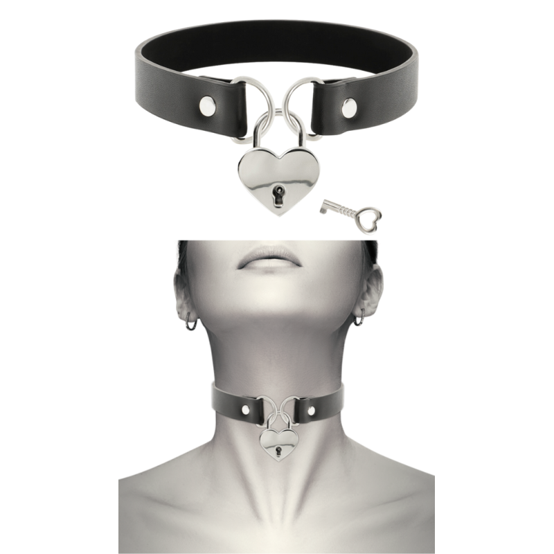 COQUETTE CHOKER WITH HEART-SHAPED LOCK AND KEY BLACK