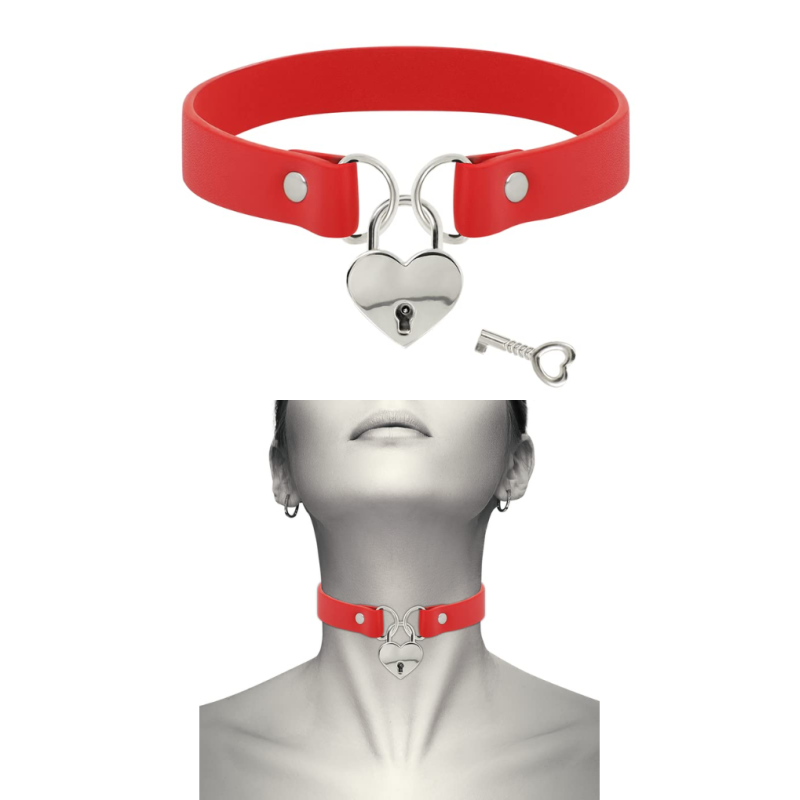 COQUETTE CHOKER WITH HEART-SHAPED LOCK AND KEY RED