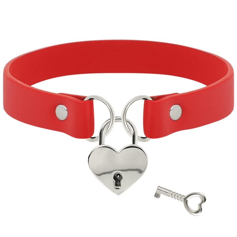 Coquette Chic Desire kollektsioonist punast värvi vegan-nahast choker südamekujulise lukuga.