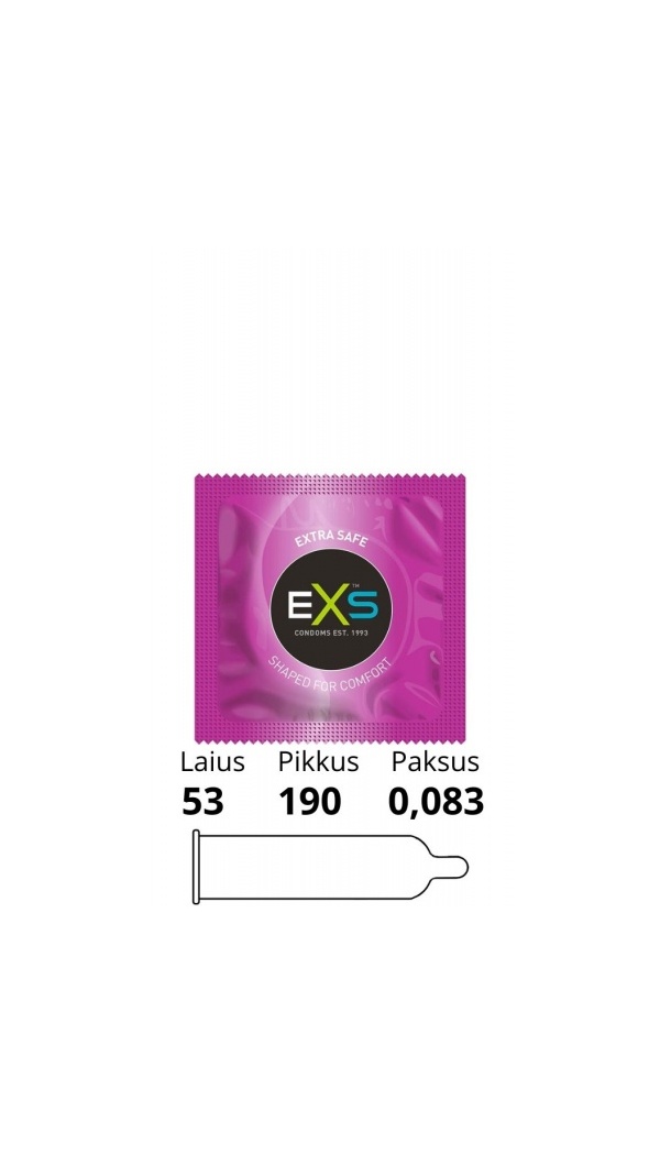 Võrreldes tavakondoomide paksusega(0.07mm) on EXS Extra Safe kondoomide paksus 0.082mm - ideaalsed neile, kes tahavad parimat kaitset ja kindlustunnet, samuti sobivad hästi anaalseksiks. Kõik EXS kondoomid vastavad rangetele ISO ohutusstandarditele ja on toodetud tehastes, mis läbivad pidevalt kvaliteedikontrolli. Elektrooniliselt testitud.
