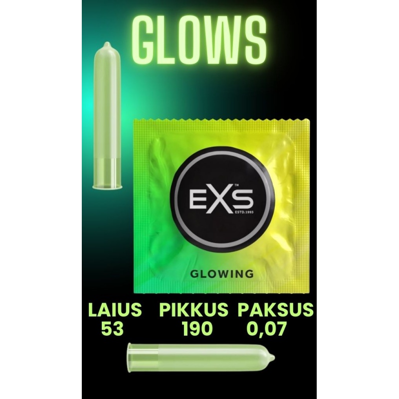 Valgustage oma intiimsed hetked EXS pimedas helendavate kondoomidega, kus kaitse kohtub põnevusega, pakkudes unustamatu kogemuse.