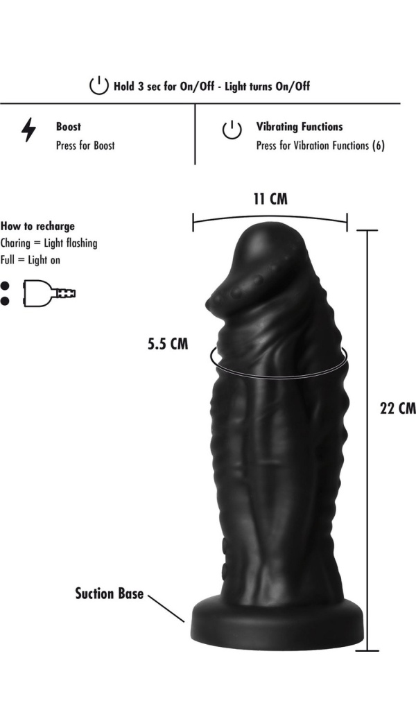 Игрушка оснащена 9 режимами вибрации, а также отдельной кнопкой турборежима, которая мгновенно включает максимальную мощность. Прочная присоска фиксирует игрушку на любой гладкой поверхности, позволяя использовать её без помощи рук.