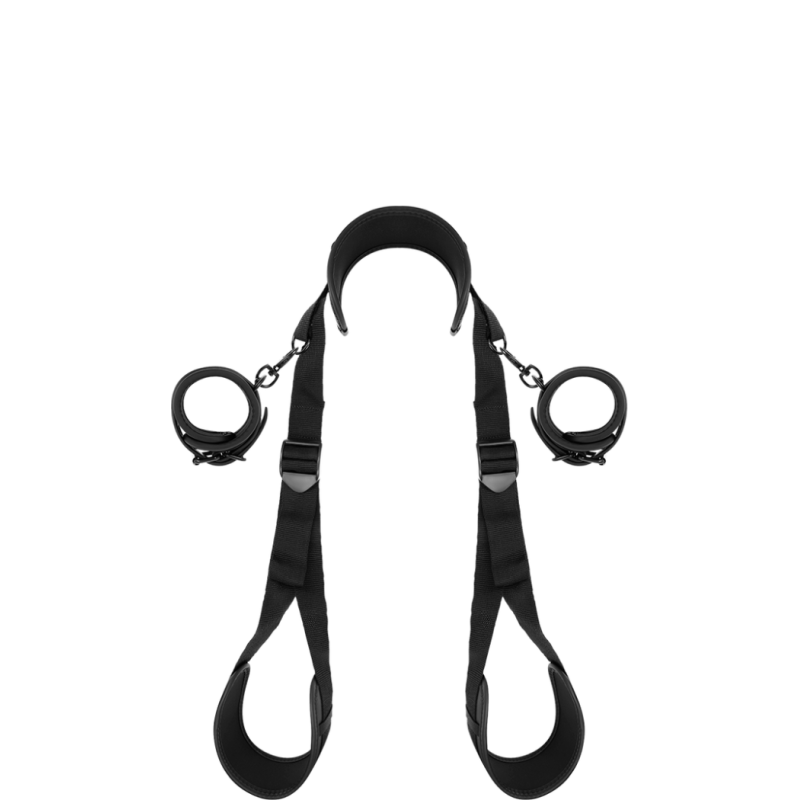 FETISH SUBMISIVE kinnituskomplekt toetab teid kõige vajalikumal hetkel: aitab mugavalt säilitada üles tõstetud jalgadega positsiooni pika aja jooksul, hõlbustades penetratsiooni ning takistades positsiooni muutmist enne lubatud aega. Komplektis on reguleeritavad ja vastupidavad kinnitusrihmad, mis hoiavad jalgu kindlalt paigal, kui vaja. Vegan-nahast kaelarihm on pehme ja polsterdatud, pakkudes maksimaalset mugavust.