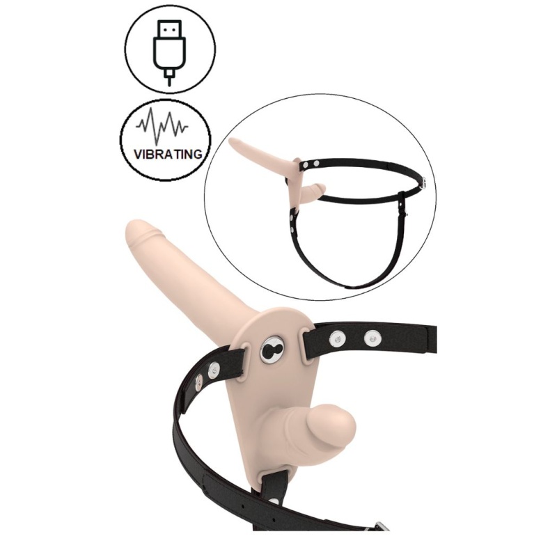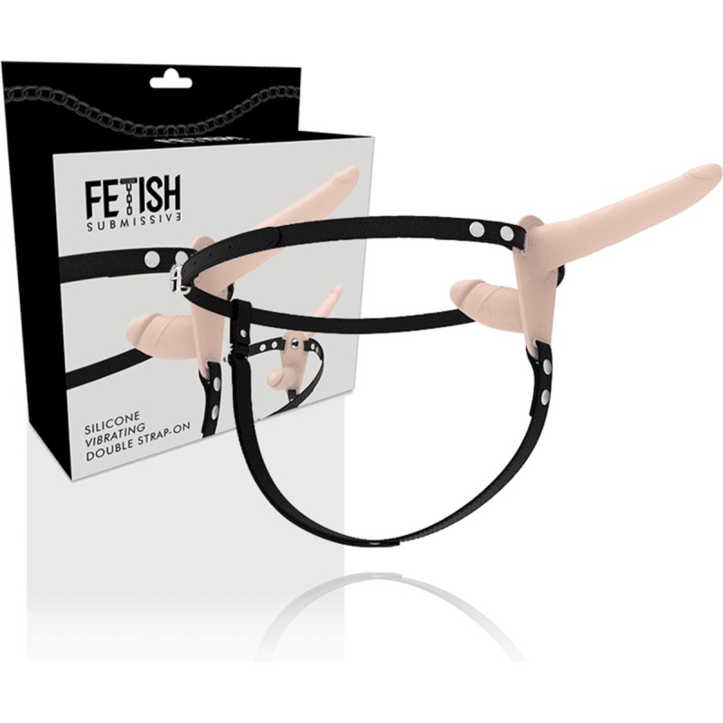 FETISH SUBMISSIVE DOUBLE STRAP VIBRATOR STRAP-ON FLESH – Double penetration harness adjustable to any hip size, even the largest. The dildo is made of premium silicone.