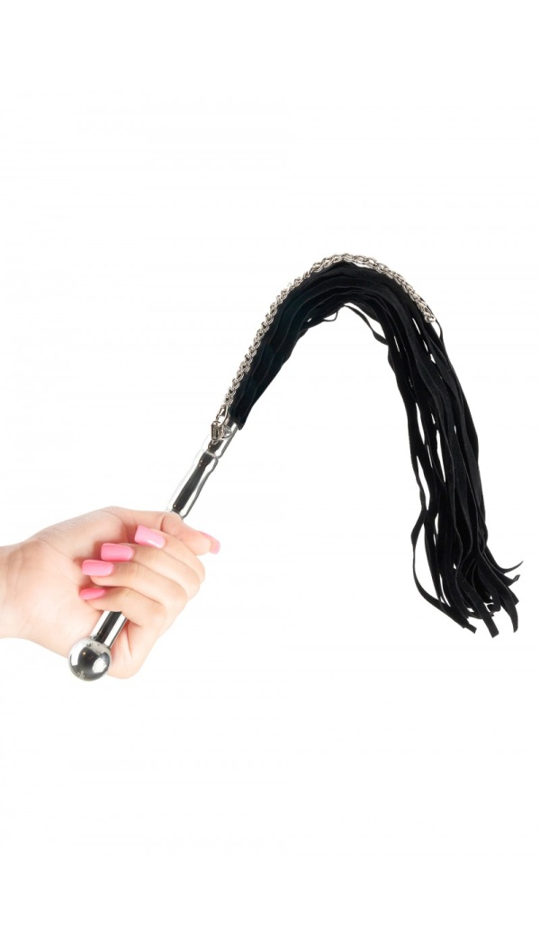 Selle metalse käepidemega piitsa sametiselt pehmete narmaste varjus on peidus ka metallist ketike.