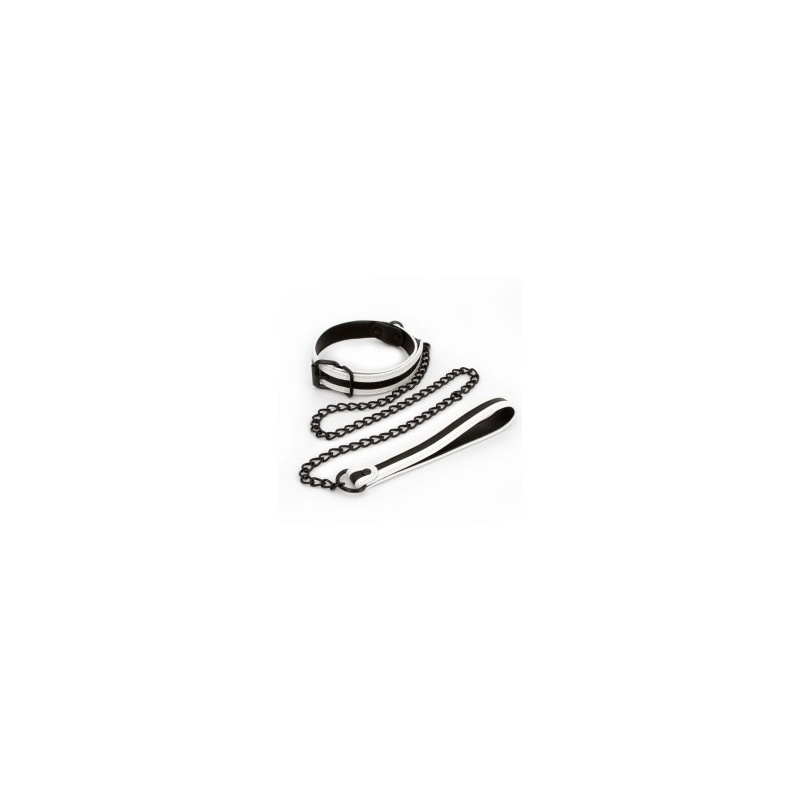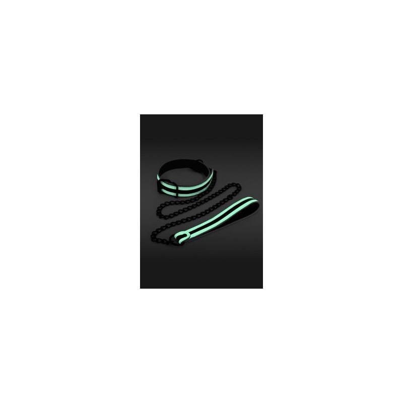 Pimedas helenduv kaelarihm koos jalutusketiga.