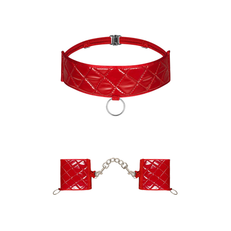 Do you dream about something that will fulfill your innermost fantasies? Something spicy, ready for naughty fun, is recommended for the evening! The Hunteria choker and handcuffs will take care of spicy nights, and deep red will warm your desires even more!