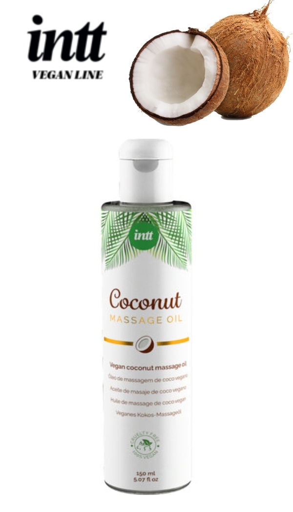 INTT Massage Oil Vegan Coconut on eriti libe, magusa kookospähklilõhnaline massaaziõli, mis jätab naha sametiselt pehmeks lõõgastava, erootilise massaazi jaoks.