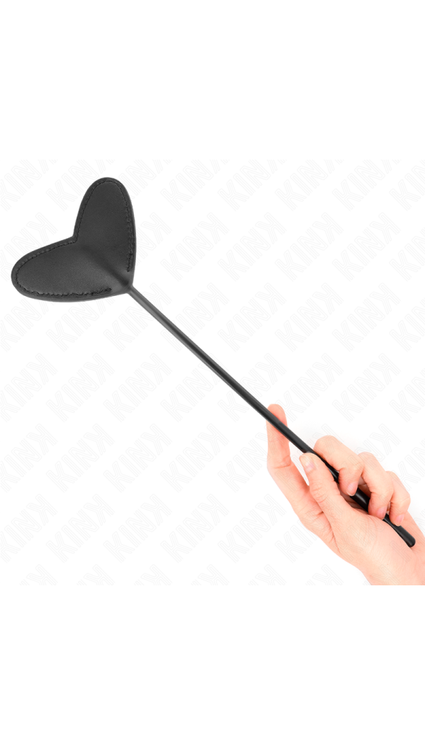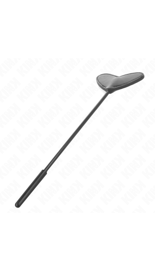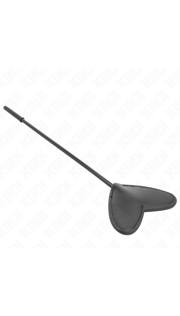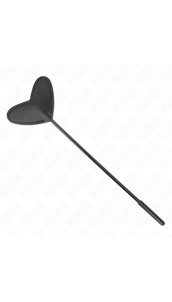 KINK – лёгкая плётка-сердце (чёрная, 33 × 10 см), декоративный аксессуар для мягких игр и ролевых образов, подходит для начинающих.
