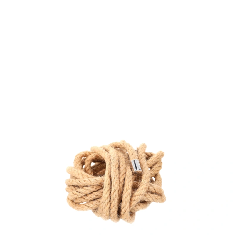Верёвка уже обработана, полностью готова к использованию и имеет мягкую, неколющуюся поверхность, сохраняя при этом естественную жёсткость и структуру конопляного волокна. Такое сочетание обеспечивает комфорт на коже и одновременно даёт нужный контроль при создании узлов.