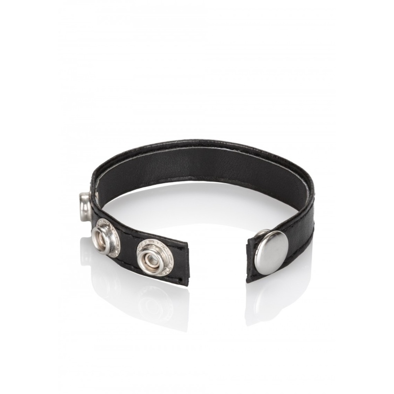 Nahast valmistatud ja metallist trukkidega suuruse reguleerimisvõimalusega peeniserõngas.