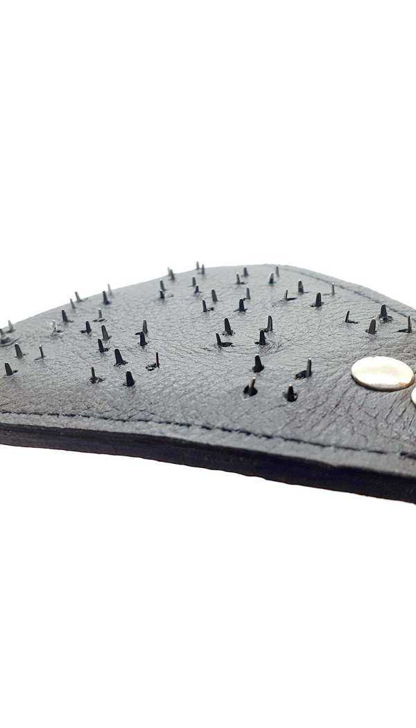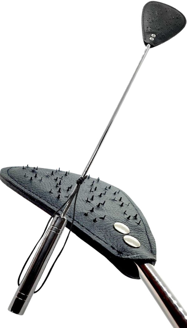 Leather Spiked Vampire Crop by Black Label on mõeldud eriti intensiivseteks BDSM-stseenideks ning pakub laia valikut võimalusi nii füüsilise kui ka vaimse stimulatsiooni jaoks. Piitsa kogupikkus on 63 cm, mis jätab piisava distantsi, et löögid saaksid olla täpsed ja jõulised. Käepide on valmistatud roostevabast terasest, mis lisab kaalu ja stabiilsust, samal ajal kui lõpus olev nahast klapp on kahepoolne: