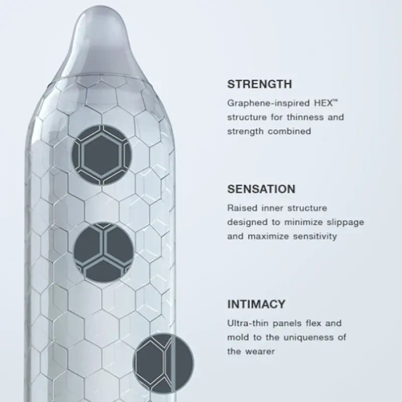 LELO HEX — это настоящий прорыв в мире контрацепции и одно из самых значимых изобретений в технологии презервативов за последние десятилетия. Уникальная структура из 350 микроскопических шестиугольников создаёт внутреннюю сетку, которая придаёт материалу необычайную прочность и устойчивость к разрыву, оставаясь при этом ультратонкой и чувствительной.