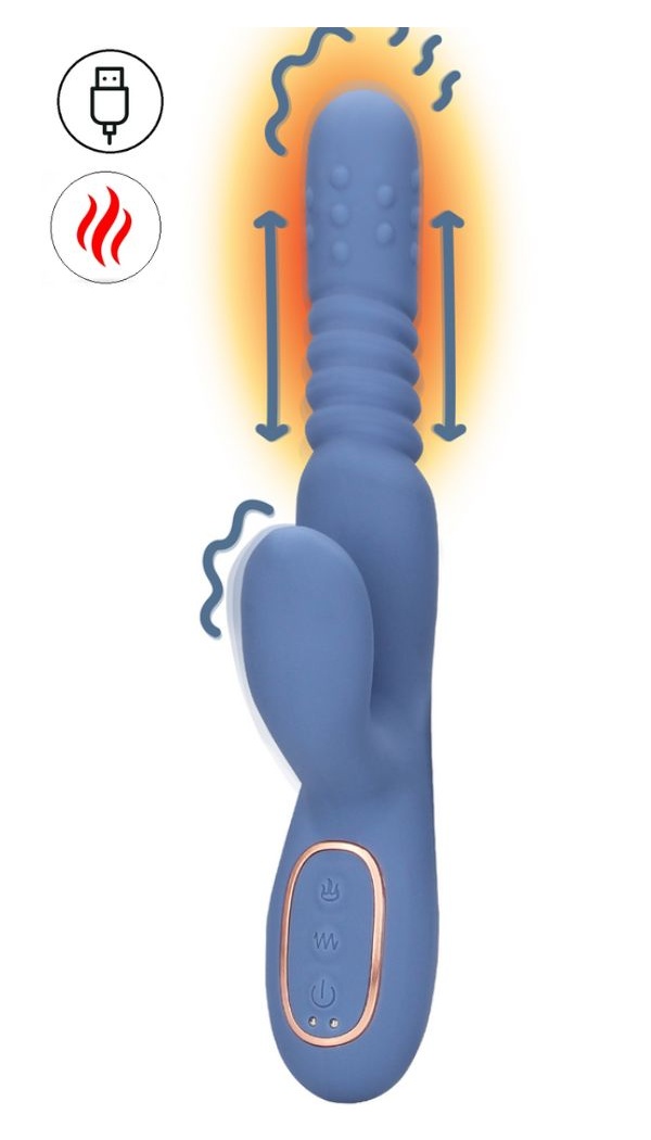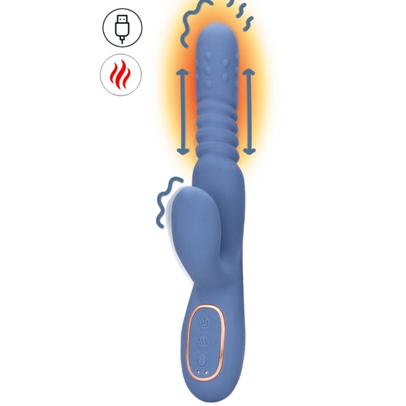 Вибратор 4 в 1: фрикции, массажные бусинки, нагрев и виброязычок для клитора – Blue Nova