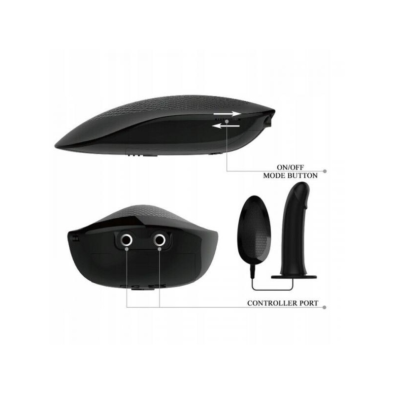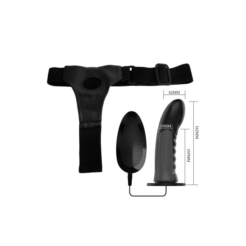Регулируемая упряжь изготовлена из плотного эластичного материала, надёжно фиксируется на талии и бёдрах и остаётся стабильной во время движения. Вибрация управляется выносным пультом, работает от батареек AAA и позволяет выбрать подходящий режим.