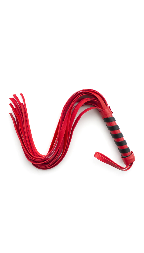 Mini Flogger 45 cm Red/Black – kompaktne ja elegantne PVC-piits, mis sobib nii õrnaks stimulatsiooniks kui ka intensiivsemateks BDSM-mängudeks.